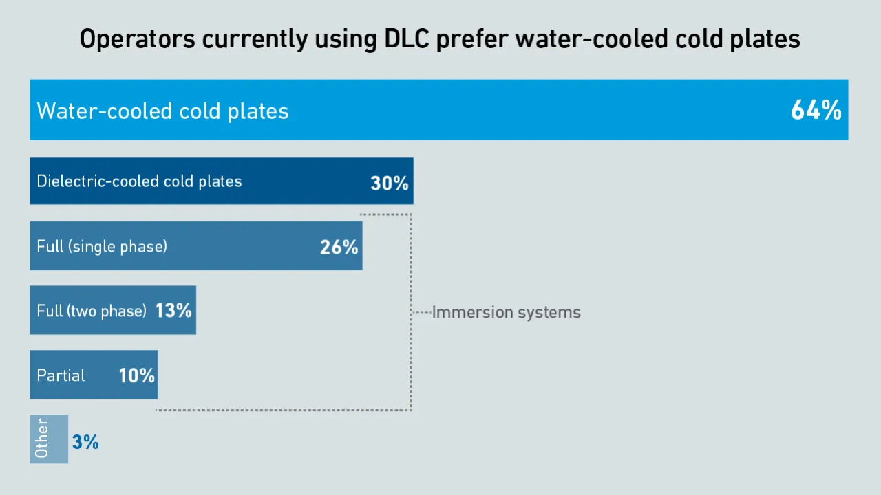 The transition to direct liquid cooling has been a slow process. Today, operators work with water cold plates more than any other type of cooling, but this might change once a wider range of DLC types become available.