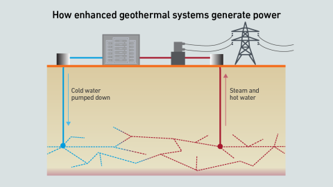 Enhanced geothermal systems use advanced drilling and hydrofracturing techniques to access geothermal energy in more locations. Some data centers may use enhanced geothermal energy for on-site, low-carbon power.