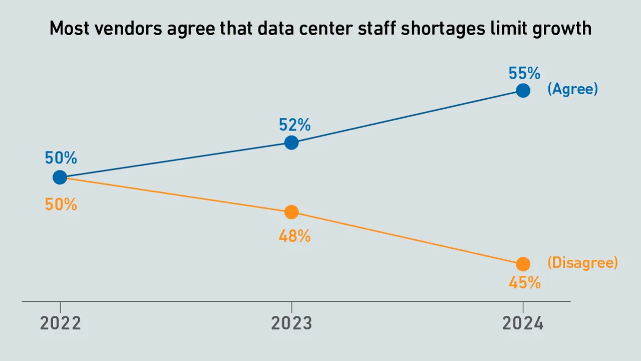 The main challenges facing their customers, according to suppliers that responded to the Global Data Center Survey 2024, is predicting future data center capacity and the impact that staffing shortages will have on capacity growth.