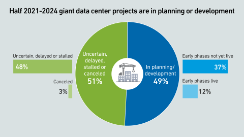 Giant data centers are being planned and built across the world to support AI, with successful projects forming the backbone of a huge expansion in capacity. But many are also uncertain, indicating risks and persistent headwinds.