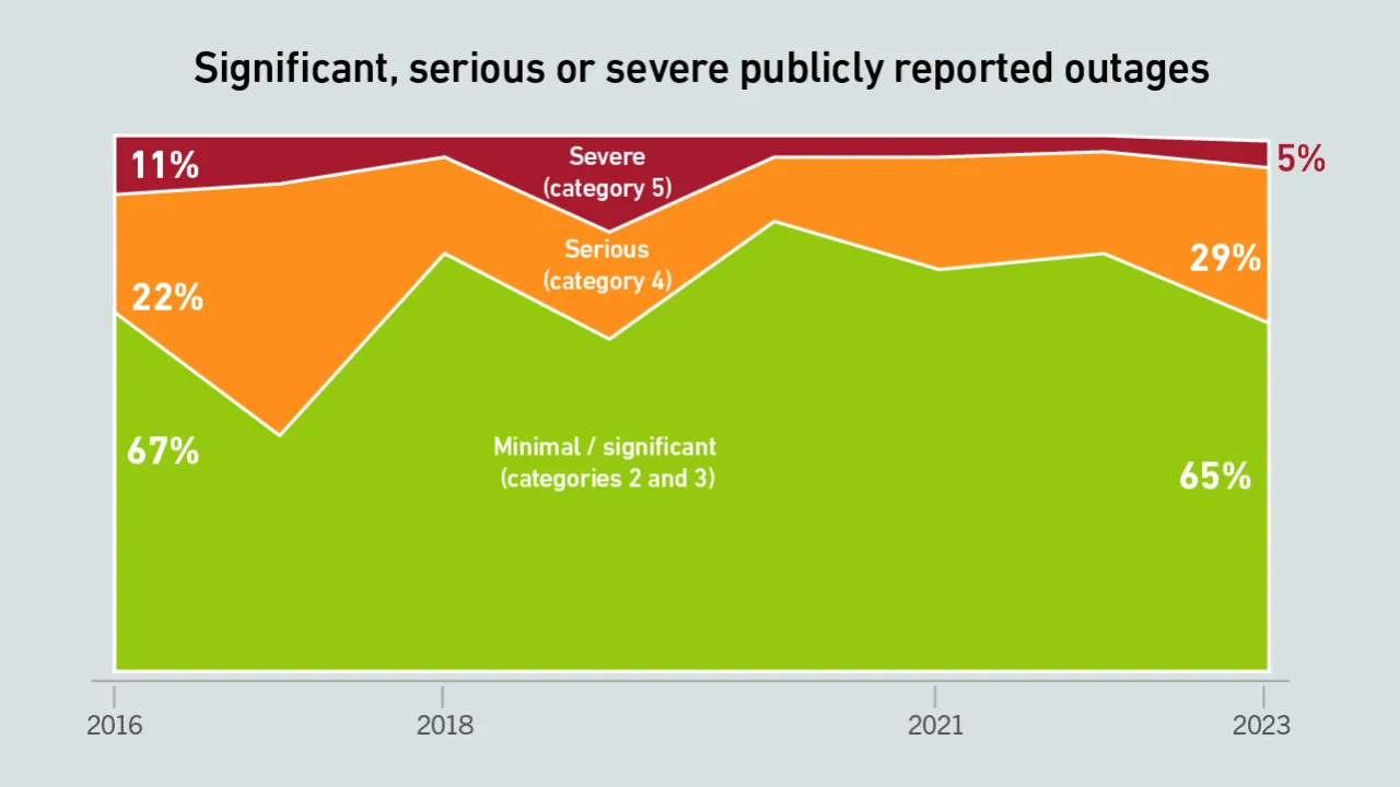 Uptime Institute draws lessons from global outages data for 2024's annual benchmark review of the impacts, costs and changing types and frequency of crucial infrastructure failures.